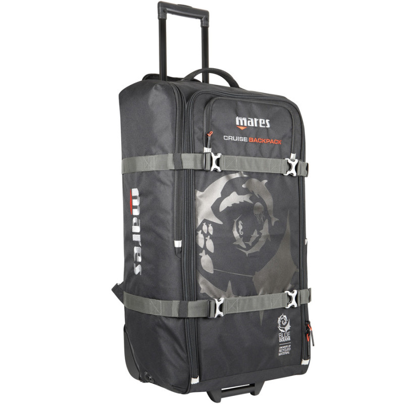 Compact, léger et extrêmement spacieux. Polyvalent, il est équipé de grandes roues, d'une poignée télescopique, de bretelles et même de poches pour les palmes !